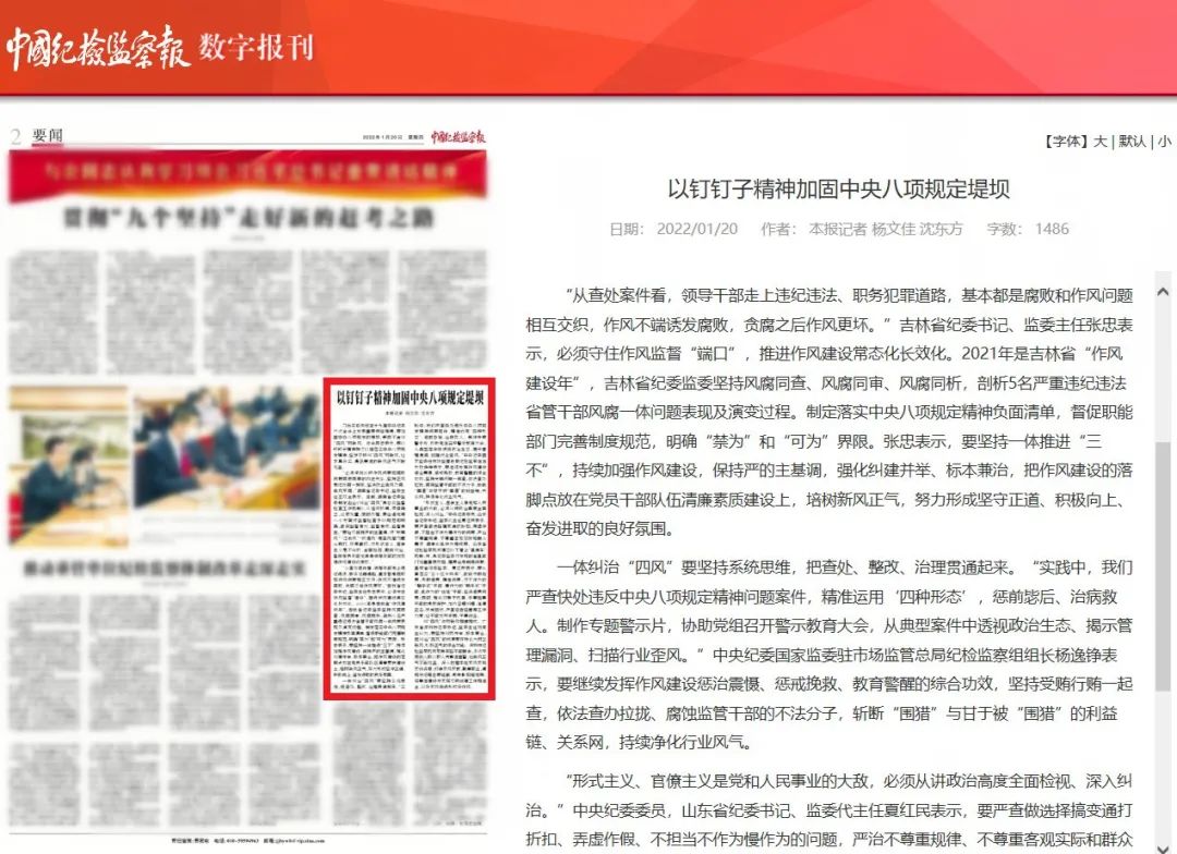 “从查处案件看,领导干部走上违纪违法、职务犯罪道路,基本都是腐败和作风问题相互交织,作风不端诱发腐败,贪腐之后作风更坏。”吉林省纪委书记、监委主任张忠表示,必须守住作风监督“端口”,推进作风建设常态化长效化。2021年是吉林省“作风建设年”,吉林省纪委监委坚持风腐同查、风腐同审、风腐同析,剖析5名严重违纪违法省管干部风腐一体问题表现及演变过程。制定落实中央八项规定精神负面清单,督促职能部门完善制度规范,明确“禁为”和“可为”界限。张忠表示,要坚持一体推进“三不”,持续加强作风建设,保持严的主基调,强化纠建并举、标本兼治,把作风建设的落脚点放在党员干部队伍清廉素质建设上,培树新风正气,努力形成坚守正道、积极向上、奋发进取的良好氛围。