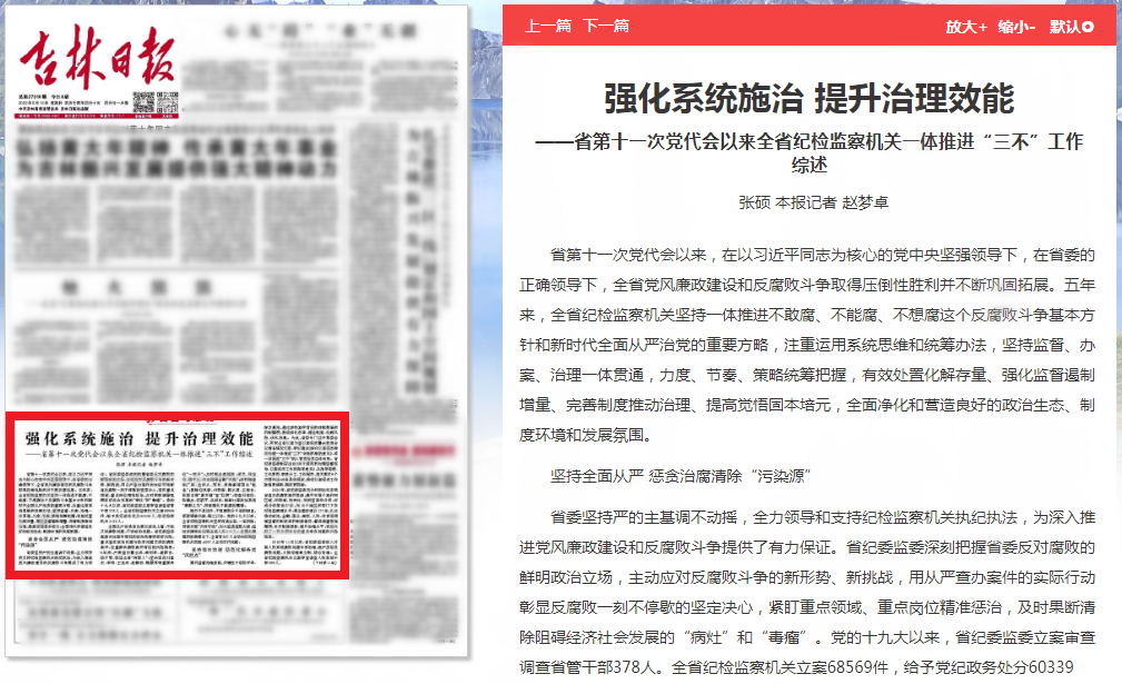 吉林银行党委深刻汲取系统内5名省管干部先后被查处的教训,认真落实省纪委监委以案促改具体要求,针对共性问题举一反三、自查自纠,推行10项改革、2项变革,深化靶向整改,防范化解风险。在省纪委监委督促推动下,吉林银行各项流动性指标均达到优良标准,各项存款显著增加,重回发展正轨。