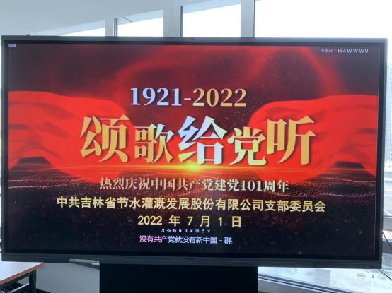 为庆祝中国共产党成立101周年,回顾党的光辉历程,弘扬党的优良传统,激励广大党员干部职工凝心聚力、奋发进取,充分发挥模范带头作用。7月1日,节水股份公司党支部开展“颂歌给党听”活动。公司全体员工积极参与。