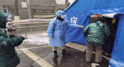 3月11日傍晚,我第二次去做核酸检测,当时天空飘着雪花,社区工作者坚守在工作一线为居民采集样本。看着他们拖着疲惫的身躯,蹲在马路边吃饭的时候,我备受感动,于是便瞒着家人联系集安社区,成为了一名疫情防控志愿者。
