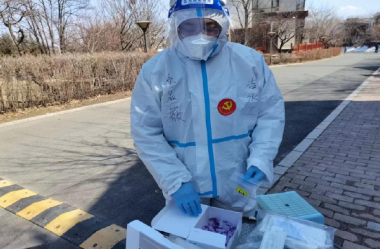 他的工作任务是为居民发放试剂盒,因为是无接触发放,所以需要对每户居民登记,然后将试剂盒放在居民事先准备