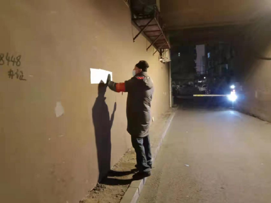 秦亚光在社区张贴疫情防控通告及疫情期间的线上采购便民信息