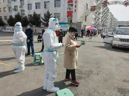 3月22日,梅河口进行全民核酸检测,于胜利负责维持金华社区核酸检测队伍的秩序,解答居民提出的问题。早上5点多,他开始了核酸检测的准备工作,直到下午3点,核酸检测人员逐渐减少,他才可以和其他志愿者轮流休息一会,揉揉早已冻僵的双腿,搓搓早已冻麻的双手。