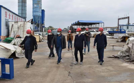 检查组首先来到混凝土拌合站,在场外做过核酸抗原自测并进行登记后,进场查看了料场、防疫物资的储备以及钢筋焊接等情况,详细查看了焊接全过程,杨卫峰强调,焊接工人必须要证件齐全,要严格按照规范开展工作,确保焊接的质量。在管道进水口闸室,对临时用电线的架设提出了详实的安全防范措施要求,并重点询问了护坡的施工工艺,坡比是否符合要求,能否承受住雨水冲刷等问题,第四分局局长俞明、项目负责人孙名岩进行了细致的解答。
