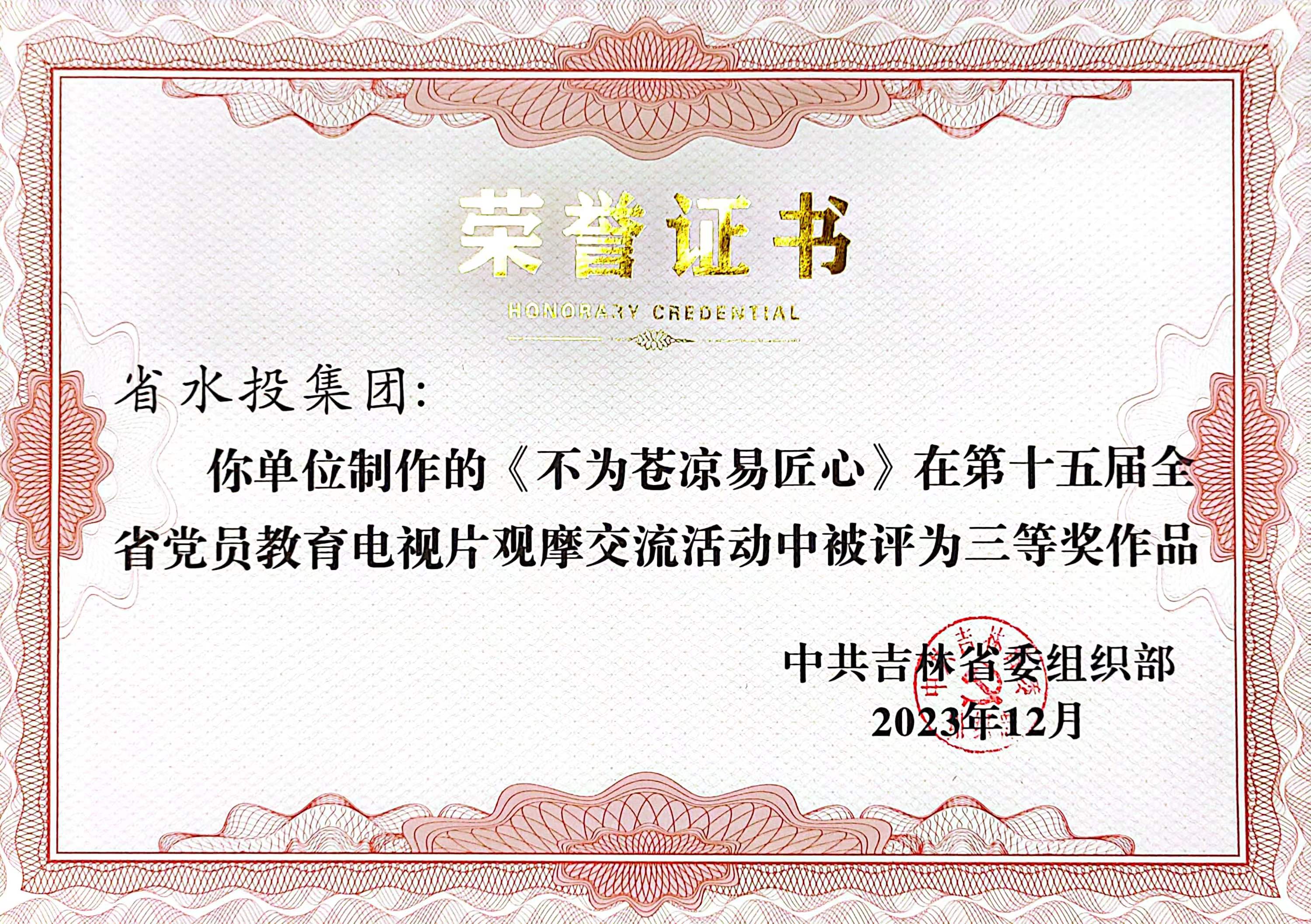吉林水投集团在第十五届全省党员教育电视片观摩交流活动中获奖