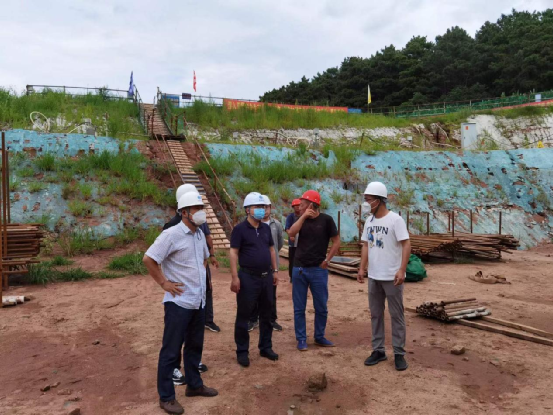 7月20日上午,集团公司中部引水二期工程建设推进工作组组长王世军,副组长陈丁发一行,检查指导中部引水二期工程奢岭泵站施工现场疫情防控、防汛度汛、施工质量安全管理及泵站施工进度管控等工作。