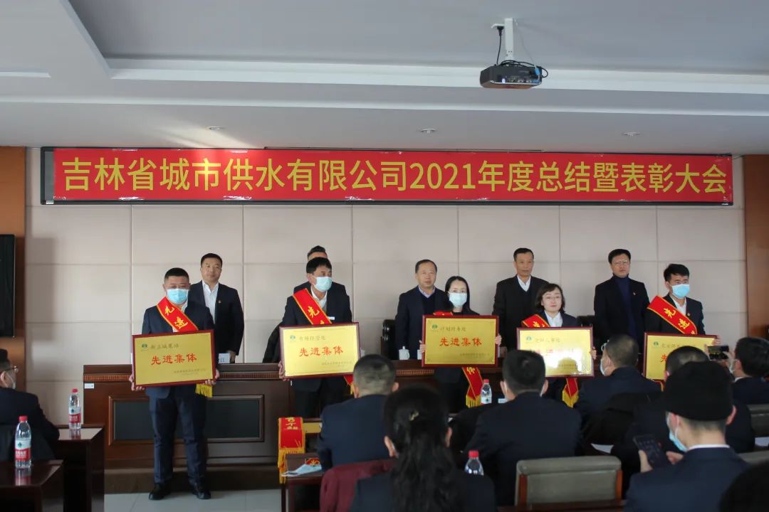 会议议程第四项是党总支书记、总经理贾洪玮做2021年度工作报告。贾洪玮在祝贺受到表彰的集体和个人的同时也肯定了公司每一位员工在2021年度的付出和成绩。贾洪玮表示,2021年在集团公司的统一部署下,公司紧紧围绕集团公司下达的各项年度工作目标,克服国内经济下行压力、供水市场萎靡等诸多不利因素,通过全体员工的共同努力,圆满完成了各项任务目标,成绩的取得是公司上下全体干部职工团结一心,努力拼搏的结果。2022年,供水公司一要持续加强生产安全管理,确保供水生产平稳运行;二要积极稳固现有用水户,不断开发新用水户;三要不断挖掘生态补水能力,持续释放中部引水工程生态补水功能;四要努力节本降耗,最大限度释放供水效益;五要积极主动协调,加大追缴陈欠水费力度;六要发挥培训中心职能,全面提升一线员工的技能水平;七要精心组织细致落实,保证年度项目按期保质保量完成;八要持续抓好党建工作,为集团公司党建工作再填新亮点;九要强化廉洁教育,持续推进“三不”体制机制建设。2022年,任重而道远,城市供水公司要上下一心,克服前进道路上的一切艰难险阻,牢记“引长白绿水,利百业民生”的企业使命,为实现“以水为媒,做一流水务企业”的既定目标,共筑供水公司新的辉煌。