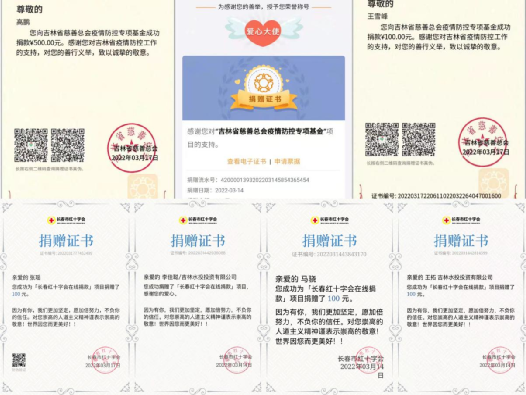 按照疫情防控要求,公司力所能及的想为疫情防控提供支持,虽然不能有组织的进行统一行动,但疫情防控情况确始终牵动着大家的心,每个人时刻关注着疫情信息,用实际行动汇聚抗击疫情的正能量。领导班子成员以身作则,向长春市红十字会等机构进行捐款,虽然款项不多,但却是大家的一份心意,贡献着自己的一份力量。