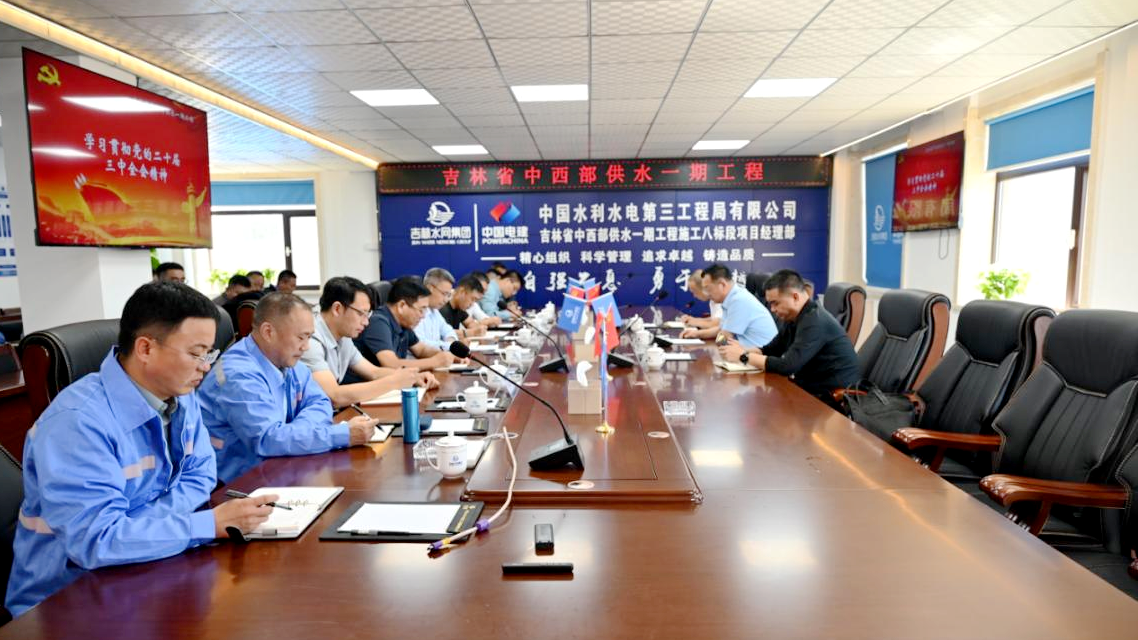 9月12日,集团公司党委书记、董事长孙富岭在中西部供水一期工程施工八标段项目部向水网集团辽源域内的各参建单位宣讲党的二十届三中全会精神。