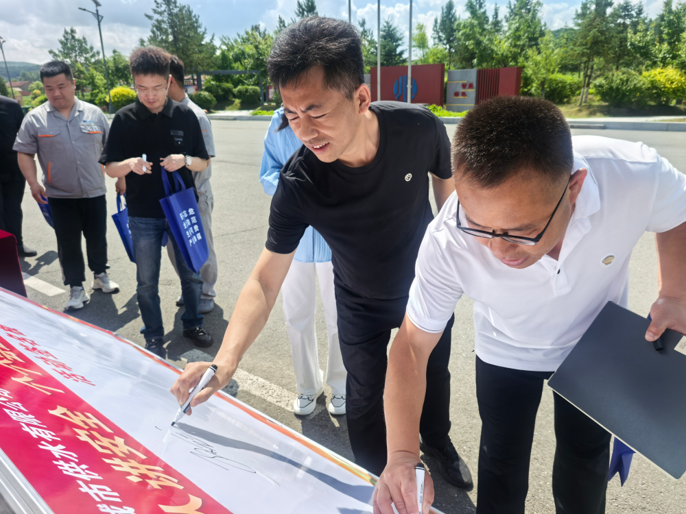 活动现场,全体人员列队庄严宣誓:“保证企业安全生产是我崇高的职责……”。铿锵有力的誓言充分展现了对安全生产管理的坚强决心,参加活动的人员依次在签名板上写下自己的名字,每一笔每一划都承载着沉甸甸的安全承诺,安全发展理念被传递到“最小单元”。