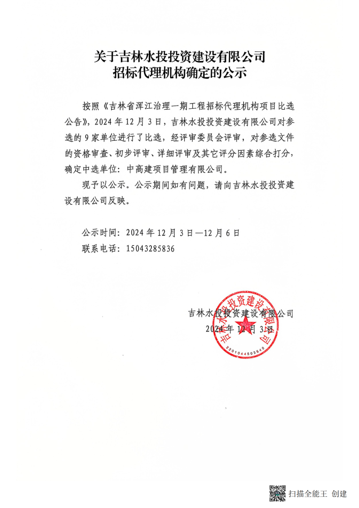 关于吉林水投投资建设有限公司招标代理机构确定的公示