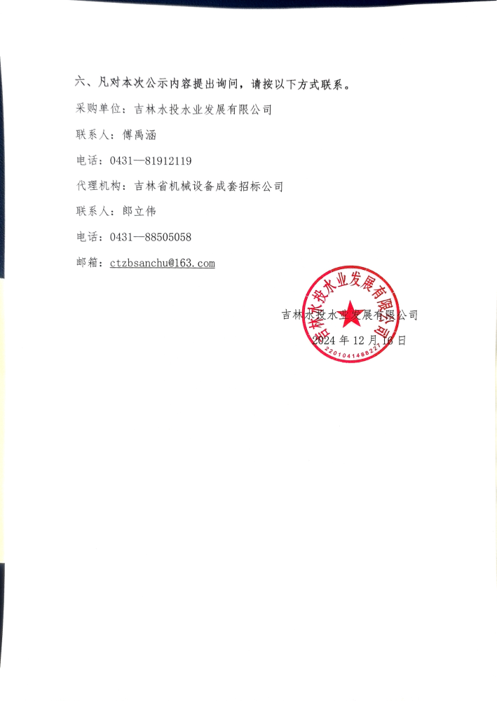 吉林省中部城市引松供水二期工程《社会稳定风险评估报告》编制项目比选结果公示
