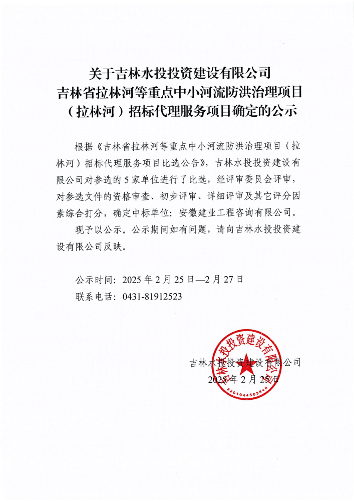 关于吉林水投投资建设有限公司吉林省拉林河等重点中小河流防洪治理项目