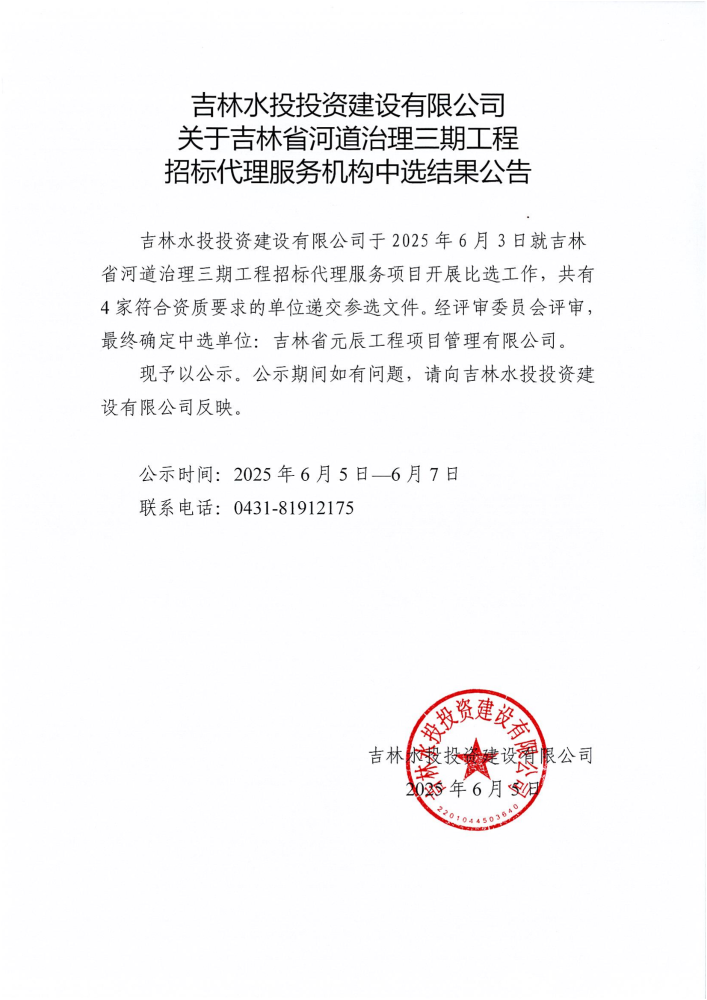 吉林水投投资建设有限公司关于吉林省河道治理三期工程