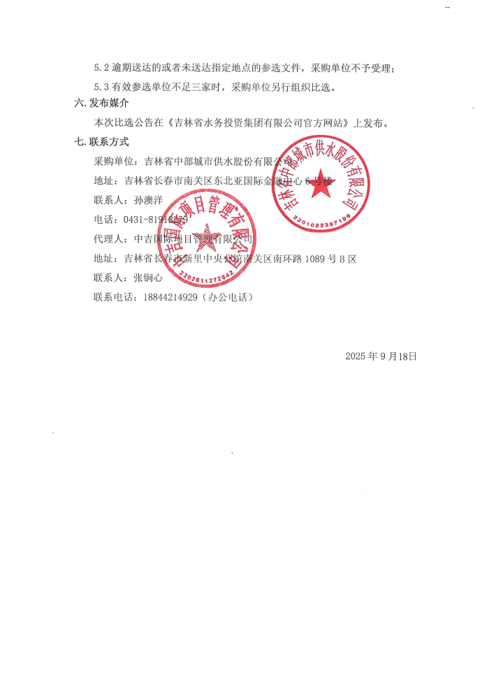 吉林省中部城市引松供水工程增殖放流鱼苗采购比选公告