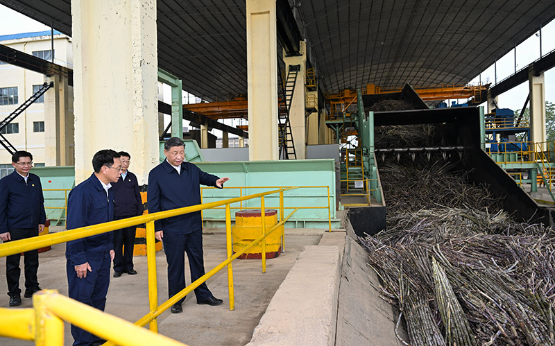 随后,习近平到来宾东糖凤凰有限公司考察。他进入生产车间察看制糖工艺和作业流程,在公司展厅了解糖业产品种类及市场份额和发展趋势。他强调,我国糖业面临激烈的国际竞争,要按照高端化、智能化、绿色化要求,加大科技创新力度,延伸产业链、提高附加值,不断提质、降本、增效,推动高质量发展。离开企业时,习近平热情地对前来欢送的员工们说,食糖是重要的副食品,大家为此辛勤劳动,为千家万户送去了“甜蜜”。希望大家不断学习新技术、采用新工艺,为糖业发展作出新贡献。