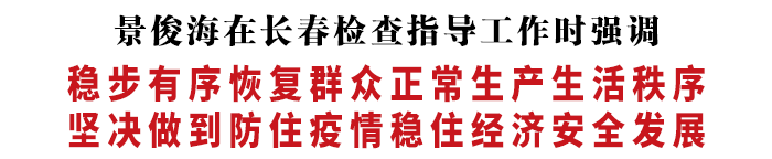在长春市疫情防控指挥部,景俊海听取重点区、各专班工作汇报。他强调,当前长春市全域均为低风险区,疫情防控形势积极向好态势正在拓展,但各级领导干部决不能麻痹大意、思想懈怠,要有“时时放心不下”的责任感,压紧压实“四方责任”,严格落实“四早”要求,确保一旦发生疫情,能够快速反应、以快制快、迅速扑灭,坚决守住不发生规模性反弹底线。要进一步完善常态化疫情防控机制,设置更多常态化核酸检测点,配备更多核酸检测车等设备,抓好隔离房间、方舱床位等资源准备和防疫物资储备,在党员干部、医务工作者中全面开展公共卫生常识和技能培训,不断提升平战转换、应急响应能力。要持续深化智慧城市建设,增强大数据应用能力,继续实施全员核酸检测关联赋码措施,确保疫情防控更科学、更精准、更快速,着力提升人防技防结合水平。要稳步有序安全解除社会面管控措施,继续严管封控区、管控区,根据全员检测结果动态调整、降级解封,同步抓好民生保供工作。要梯度有序推进复工复产、复商复市、复学复课,最大限度减少疫情对经济社会发展的影响。要积极宣传全省抗疫成效,进一步凝聚人心、提振士气,更好依靠群众、动员群众,同心协力打赢这场人民战争。