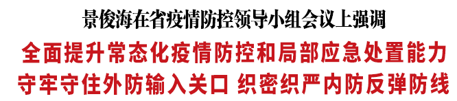 5月18日,省委书记景俊海以视频形式主持召开省疫情防控领导小组会议。他强调,要深入贯彻习近平总书记关于高效统筹疫情防控和经济社会发展的重要讲话重要指示精神,始终坚持人民至上、生命至上,坚持科学精准、动态清零,以“时时放心不下”的责任感抓紧抓实各项防控措施,全面提升常态化疫情防控和局部应急处置能力,守牢守住外防输入关口,织密织严内防反弹防线,坚决守住不发生规模性反弹底线。 会上,延边州、通化市、白山市、长白山保护开发区、长白县、集安市、临江市、珲春市、图们市、龙井市、和龙市、安图县、浑江区、抚松县主要负责同志汇报疫情防控进展情况。省卫健委主要负责同志就下一步疫情防控工作提出意见。 景俊海指出,当前,我省疫情外防输入、内防反弹压力较大,局部疫情时有发生。各级党委、政府特别是重点地区要深刻、完整、全面把握党中央确定的疫情防控方针政策,充分认清疫情防控的复杂性、艰巨性、反复性,毫不动摇坚持“外防输入、内防反弹”总策略和“动态清零”总方针,抓细抓实各项防控措施,坚决巩固住来之不易的疫情防控成果。省里要统筹调配核酸检测设备、试管、试剂和中药等资源,集结支援力量,迅速开展行动。有关市(州)要加强扁平化指挥,抓好市域统筹、资源调配,提前做好志愿者组织培训和动态招募,有序组织机关干部下沉到核酸采样、社区管控等关键岗位。有关县(市、区)要坚决扛起属地责任,迅速启动应急指挥体系,立即完成平战转换,全员投入抗疫一线。要对本地区防疫资源、隔离房间、医院床位、基本生活物资等情况进行再排查,对工作体系、岗位、布局等再优化,切实做好防疫抗疫周密准备,确保万无一失。 景俊海强调,当前有疫情地区要强化底线思维、极限思维,继续坚持快准严细实,以变应变、以快制快,严格落实“四早”和“四应四尽”要求,抓早抓小抓基础,坚决筑牢疫情防控屏障。要在流调溯源上再深入,严格落实“三公(工)”协同联动机制,充实一线力量,加强涉疫人员信息推送、核实处置、协查追踪等工作,坚决做到发现一起、扑灭一起。要在核酸检测上再细致,迅速组织开展全员核酸检测,扎实开展“敲门行动”“扫地行动”,确保应检尽检、不漏一人。要在口岸管理上再严格,坚持人、物、环境同防,认真执行落地检等要求,坚决阻断传播链条。要在社会面管控上再强化,严格实施提级管理,实行领导包保社区制度,着力加强对学校、建筑工地、工厂车间、养老福利机构等重点场所管控,切实把疫情防控措施落实落细到每一个环节。要在统筹兼顾上再精准,在全面抓好疫情防控基础上,加大生活物资调运、联保联供、就医保障等力度,坚决做到防住疫情、稳住经济、安全发展。 刘伟、范锐平、吴靖平、胡家福、田锦尘、张忠、张志军、张恩惠、阿东、刘金波、李伟,省直有关部门及各市(州)、长白山保护开发区、梅河口市、各县(市、区)主要负责同志在各会场参会。