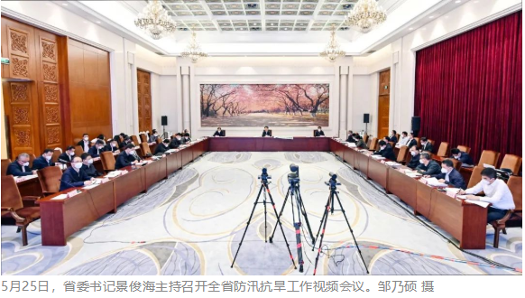 5月25日,省委书记景俊海主持召开全省防汛抗旱工作视频会议。他强调,要深入贯彻习近平总书记关于防汛抗旱工作的重要指示精神,认真落实全国防汛抗旱工作电视电话会议部署要求,始终坚持人民至上、生命至上,统筹推进高质量发展和高水平安全,立足防大汛、抗大旱、抢大险、救大灾,全力保障人民群众生命财产安全,为党的二十大胜利召开营造安全稳定的社会环境。省委副书记、省长韩俊,省政协主席江泽林出席会议。