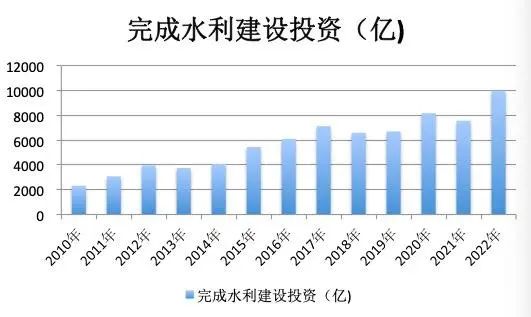 6月17日,水利部召开推进“两手发力”助力水利高质量发展有关情况新闻发布会。水利部副部长魏山忠在发布会表示,今年全国水利建设投资完成要超过8000亿元、争取达到1万亿元。 水利部数据显示,2021年全年完成水利建设投资7576亿元。如今年完成水利投资1万亿,对应的投资增速将达到32%,而2021年同期增速则是下降7.4%。 随着投资的加码,建设资金来源也成为各界关注的问题。从近期的政策导向看,水利建设资金来源既有传统的财政资金,也有信贷、专项债、PPP甚至新兴的基础设施REITs,但仍需解决项目收益来源的问题。 水利建设投资加码 水利投资是国家稳投资的重要抓手之一。与铁路、棚改一样,作为国家基础设施建设的重点支持领域,近年来水利投资一直保持着较高的规模且呈现逐年增长的态势。 Wind数据显示,2010年全国完成水利投资2320亿,2014年增长至4083亿,2020年超过8000亿。不过2021年出现小幅下滑,当年完成水利投资7576亿。