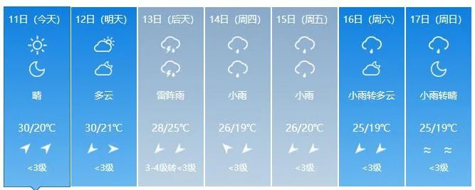 长春市:今天夜间最低气温20℃,明天白天最高气温30℃。