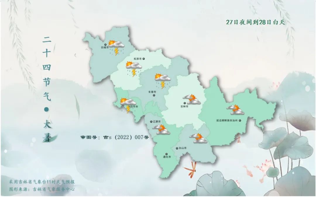 28 日白天,白城、松原、长春、四平、辽源有阵雨或雷阵雨,部分地方有大雷阵雨;