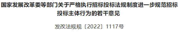 国家发改委等部门关于严格执行招标投标法规制度进一步规范招标投标主体行为的若干意见(发改法规规〔2022〕1117号)