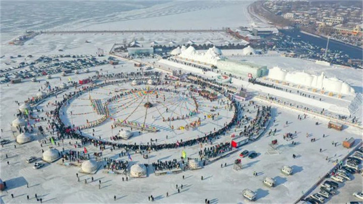 查干湖第二十一届冬捕节现场。