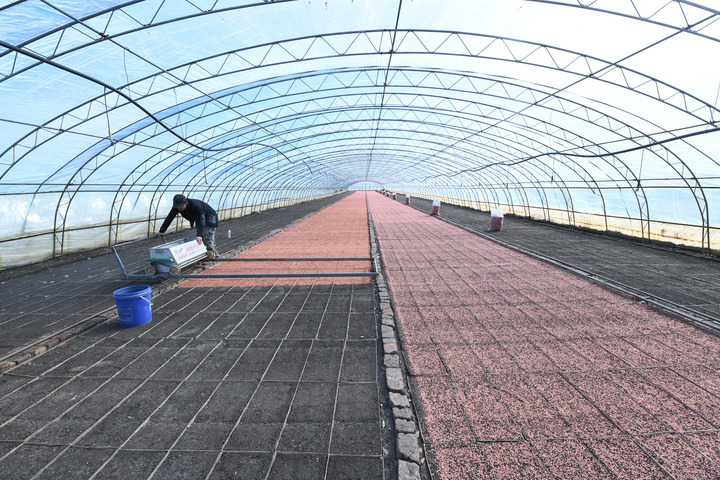 4月4日,在黑龙江北大荒农业股份有限公司友谊分公司一水稻育秧大棚里,农业职工在进行播种作业。 新华社记者 王松 摄