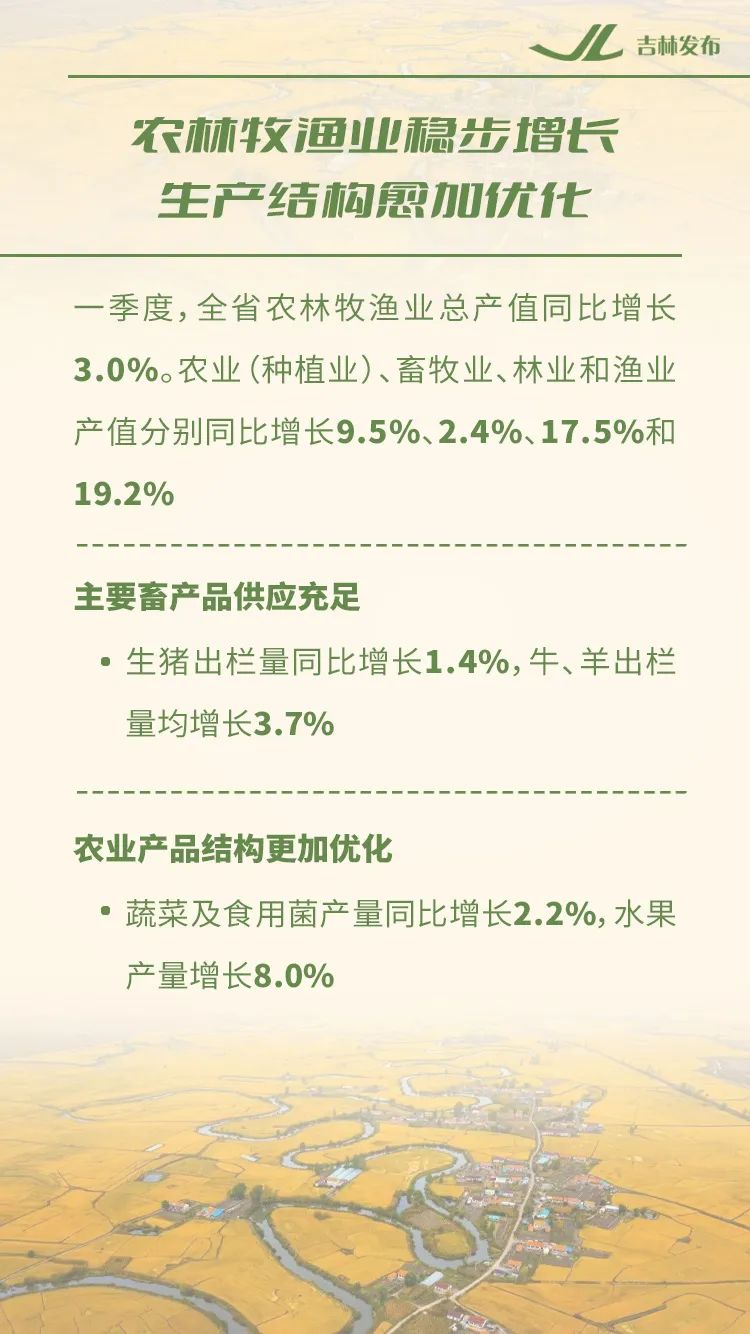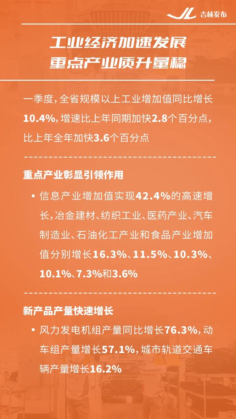 一季度,吉林省主要经济指标增速较快、领跑全国;高质量发展扎实推进,经济发展质量持续提升。