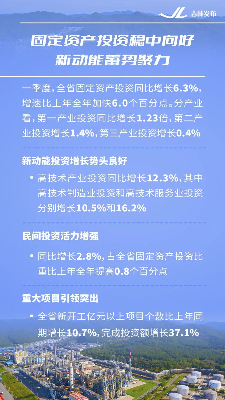 全省5000万元及以上项目投资同比增长6.9%,亿元以上项目投资增长4.4%,吉化乙烯升级改造项目、吉林化纤碳纤维、中溢新能源电池等重大项目加快推进……